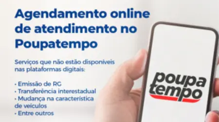 | Acesse o canal oficial | Use o site www.poupatempo.sp.gov.br, app Poupatempo Digital, WhatsApp (11) 95220-2974 ou totens. |